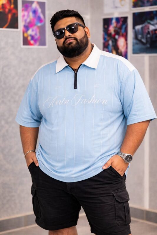 Oversize Polo Shirt Dropped Shoulder -SKY BLUE| OversizeBazar