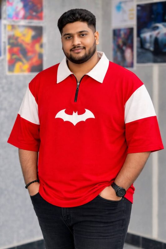 Oversize Polo Shirt Dropped Shoulder -RED| OversizeBazar