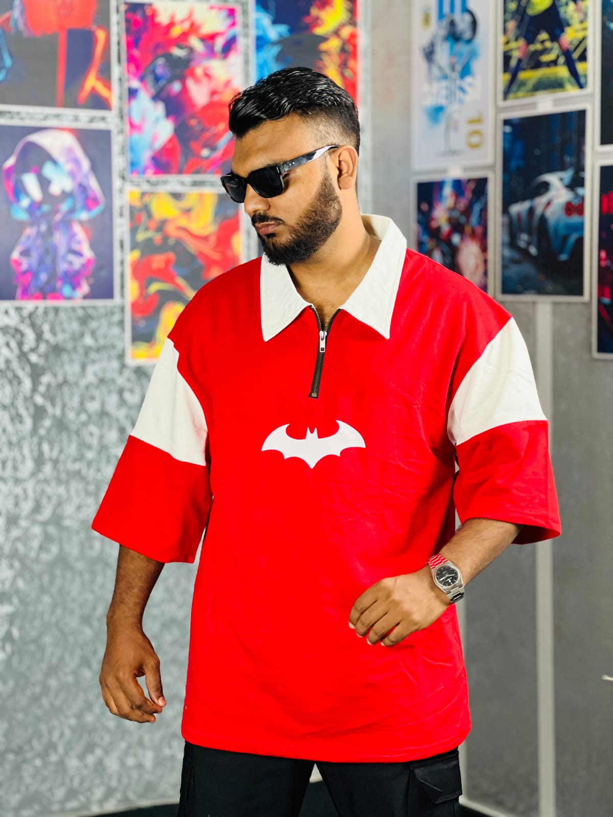 Oversize Polo Shirt Dropped Shoulder – RED| OversizeBazar